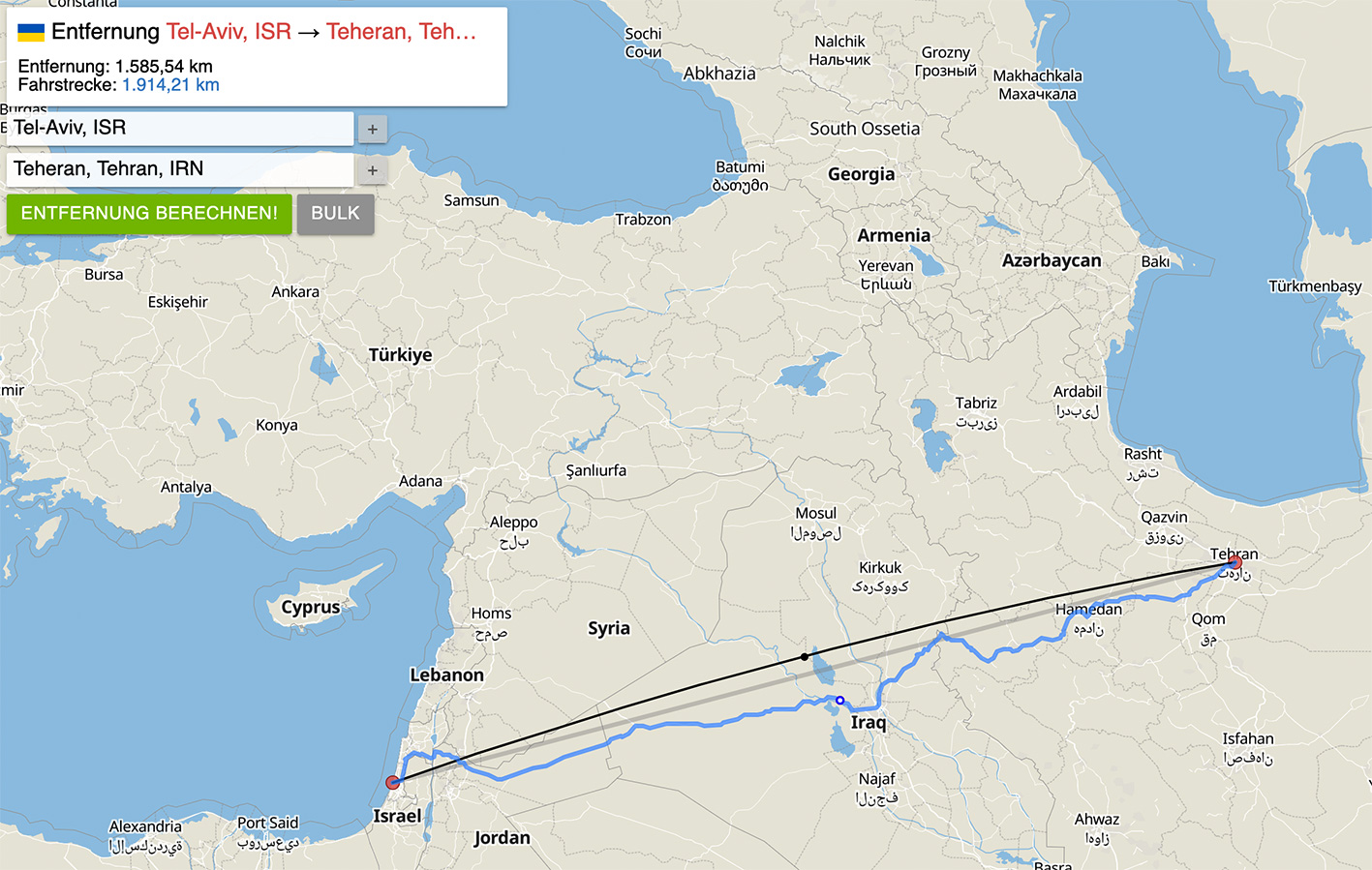 Entfernung Tel Aviv-Teheran. Copyrights: Maps and Geodata: © OpenStreetMap contributors; Favicons: Icon made by Freepik from www.flaticon.com